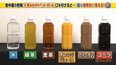 日本節目《月曜 から夜ふかし》在該實驗中,拿了白開水、綠茶、麥茶、可樂、柳橙汁、咖啡牛奶共6種飲品來做測試「被喝過的飲料,放隔夜後細菌的生成狀況」,結果...