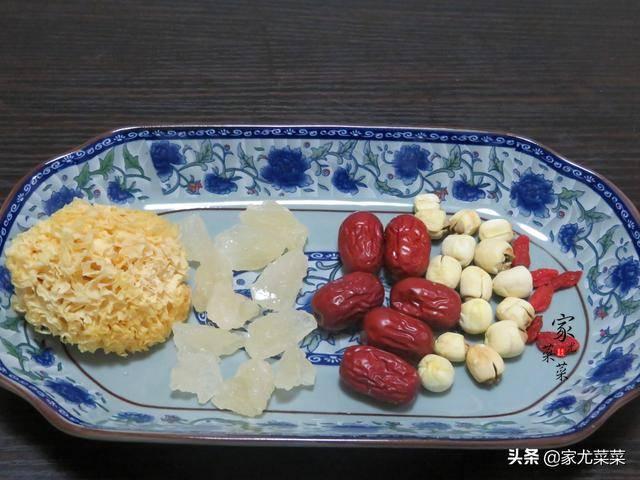 1、蓮子和銀耳泡發1小時後撈起,銀耳摘成小朵。枸杞和紅棗洗凈,記得去掉紅棗核,避免燥熱。