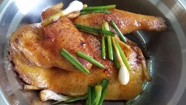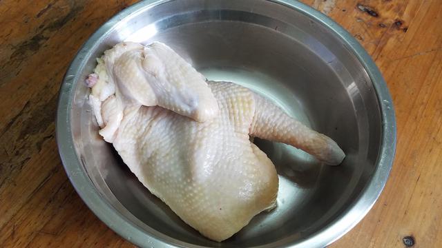 材料:半隻雞(土雞最好)、蔥、生薑