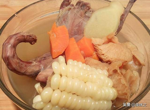 食材:鴨架、冬瓜、玉米、薑片、鹽。