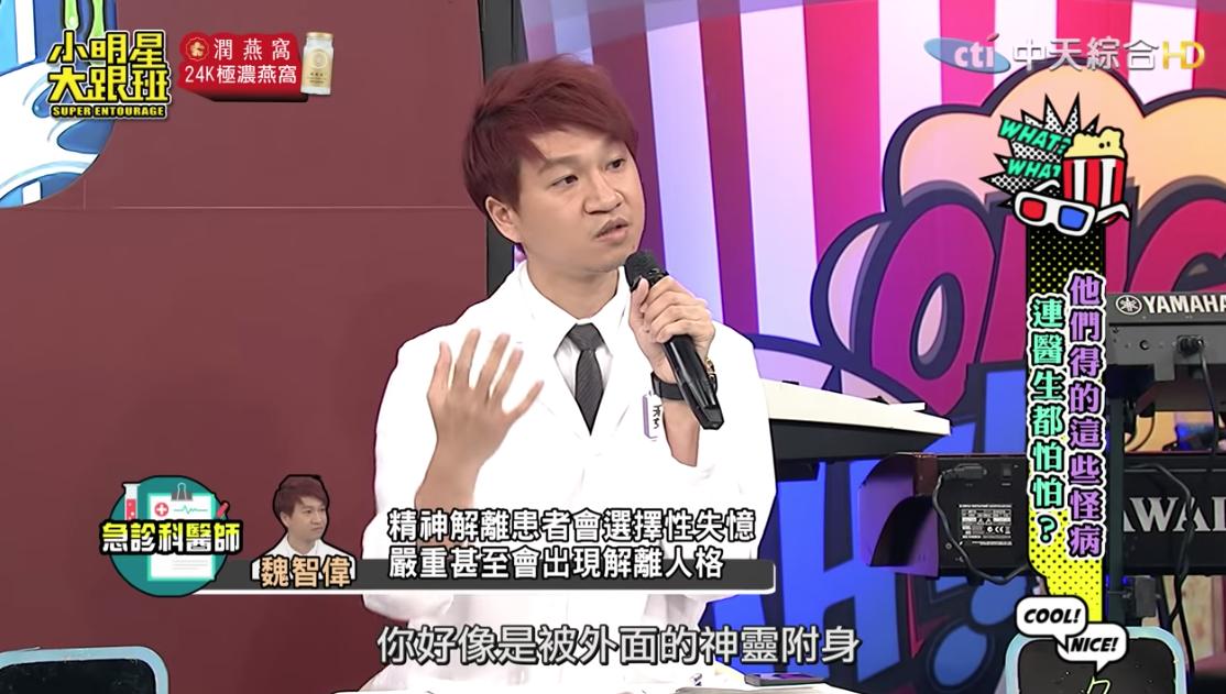不過,節目中的醫生聽完餘祥銓的症狀後,一致認為是他本身的壓力太大,導致選擇性失憶,看上去就是一種「解離症」,部份的人甚至會因此擁有多重人格。至於餘祥銓跳起來大罵祖先牌位的行為,醫生們則解釋,「這就是解離症很典型的例子,會失去自我,看在外人眼裡就很像是被什麼東西附身了。」