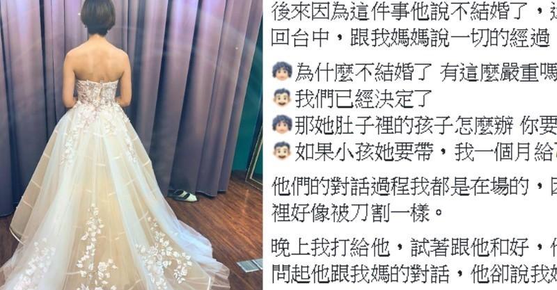 如果男女朋友論及婚嫁,雙方婚事要怎麼決定其實是非常複雜又消耗時間的事情,尤其還要尊重雙方家長,中間的溝通可說是一個大工程,日前有一名女網友,懷上男友的孩子,已經有了4個月的身孕,決定走入婚姻,誰知道有一天對方竟然突然悔婚,原因竟然只是「為了1000元」,讓網友全都傻住了!