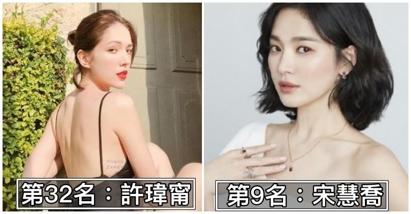 隨著韓流席捲全球,眾多韓星也同樣奪得超高名次,像是 f(x)成員水晶(第13名) 、樸信惠(第26名)、 EXID成員Hani (第42名)、少女時代成員潤娥(第52名)和 宋智孝(第53名)等等,而 BLACKPINK團內就有3個成員通通擠進榜內,包括 Lisa (第14名)、Jisoo (第35名)和Jennie (第55名)。