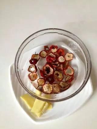 2、生薑去皮切片,山楂乾和桂皮用清水浸泡10分鐘,洗去浮土;