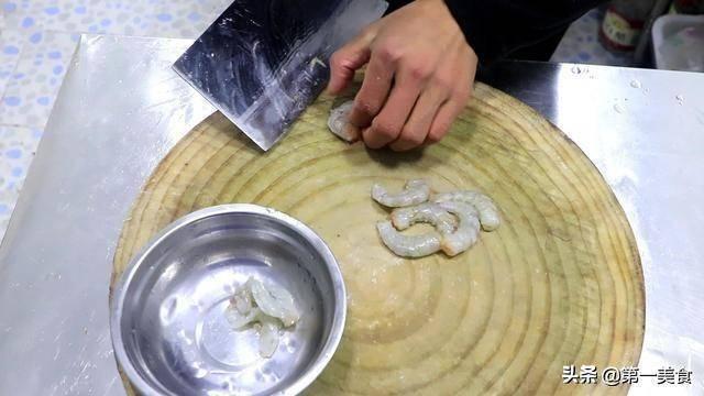 2.準備幾個大蝦,用手薅去蝦頭,然後剝乾淨蝦皮,用刀劃開蝦背,把蝦線清洗乾淨,放在盆中加入清水多洗兩次。