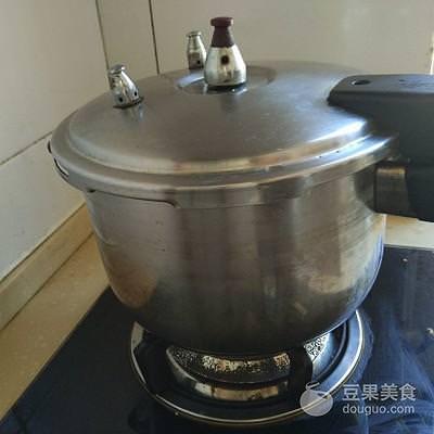 6、蓋上鍋蓋,大火煮,等高壓鍋上汽(發出鳴叫聲)之後,再用大火煮上20分鐘。關火;