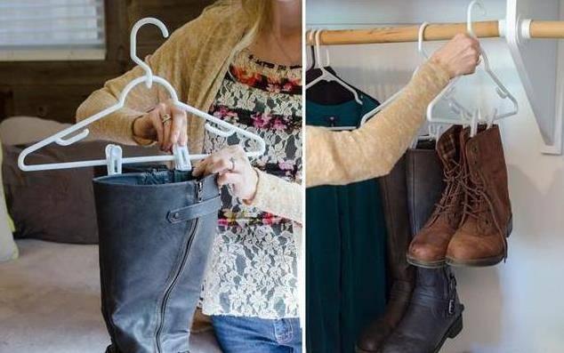 用褲夾收納鞋子其實是令鞋子不褶皺的好方法,尤其是冬天的短靴,掛起來能保持鞋型的平整。