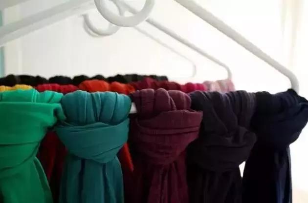 圍巾也一一繫在衣架上清晰明瞭,節省空間。