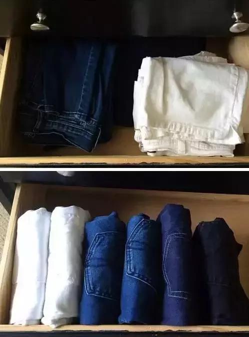 褲子也一樣,不要胡亂放,要捲起來。