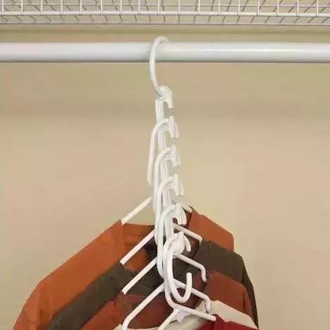 衣架佔位比較大,一般用來懸掛一些易皺不能摺疊的衣服,節省衣架放置空間的一個妙招就是在衣架頸部扣一個易拉環,這樣能掛更多的衣服,節省空間。