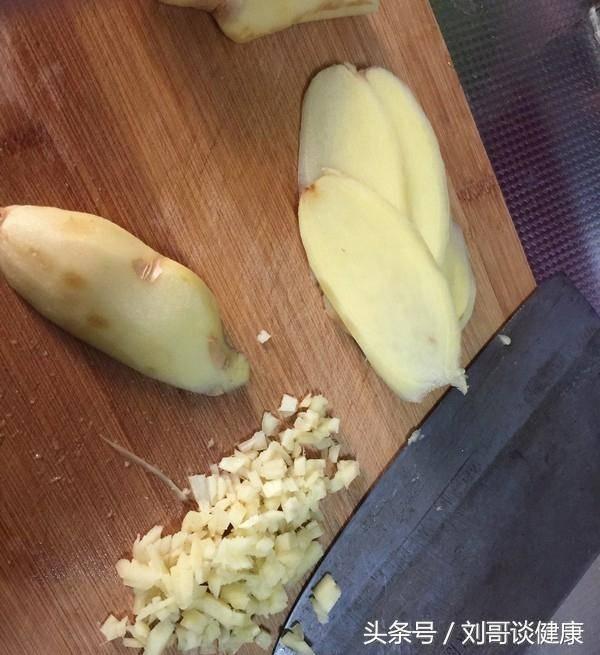 步驟2:把去好皮的生薑先切薄片,再切成末,薑末切的越碎越好。