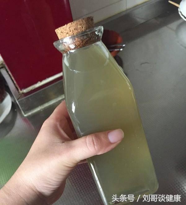 大功告成,把薑水瓶子放進冰箱裡冷藏就可以了,每天早上在碗裡倒一點薑水,然後加適當的溫水或開水,空腹喝一杯即可。
