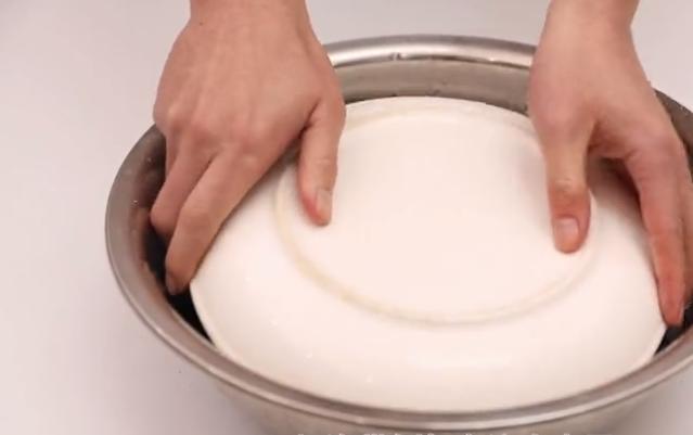 加入白醋,醋裡麵的膠質可以破壞掉這一層膠質,這樣我們的海帶就很輕鬆的就會泡軟了,在泡發的過程中,拿出一個盤子。