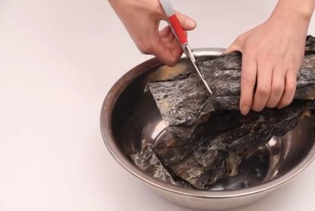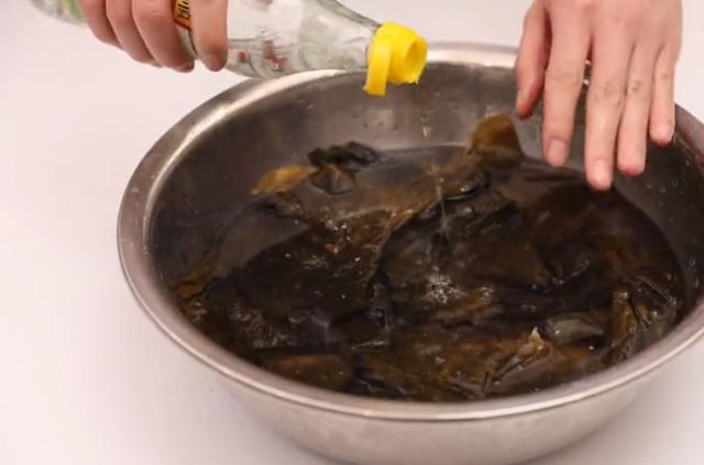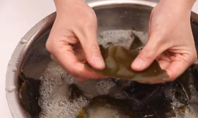 上麵的髒東西全部被洗掉了,泡發海帶的小技巧還不錯吧。