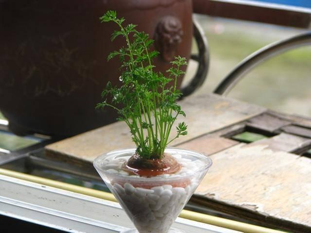 水培胡蘿蔔頭時,保證有三四公分的高度,這樣能為葉子的生長提供足夠的養分。