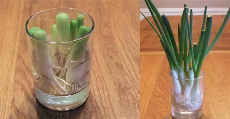 之後放到光照充足的地方水培,每隔10天左右換一次水,幾個星期後就能長出新的蔥葉,放在廚房窗臺上,可以隨時採用~