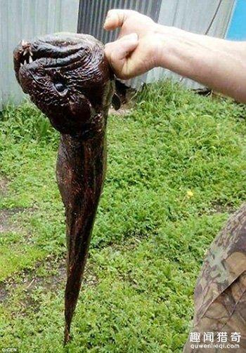 世界之大,無奇不有。俄羅斯烏德穆爾特共和國卡馬河兩個漁民捕魚時捕到一條沒見過的什麼怪魚,這條魚通體黑色,頭部奇異,牙齒尖利,身似鰻魚,長約20厘米。漁民們相信它是一個變異的淡水魚,也有人認為是食人魚的一種。