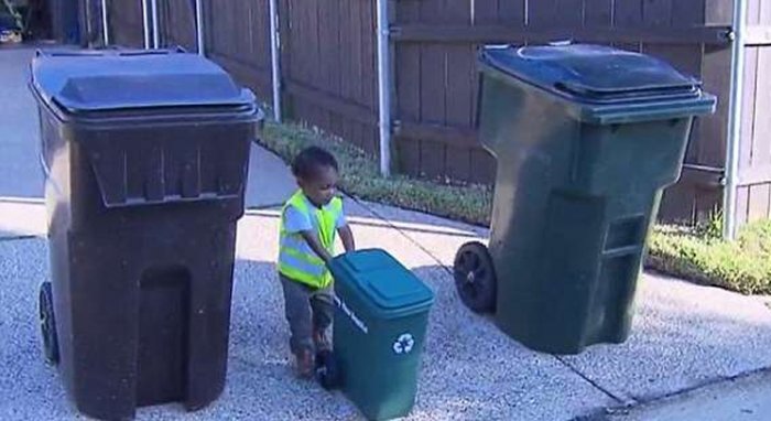 對於很多人來說,丟垃圾都是一件很麻煩的事情,聽到垃圾車的音樂就會感到一陣心煩,但是這位住在美國德州的2歲男童卻不一樣,他只要一聽到垃圾車來到社區裡的音樂,就會立刻衝出去,最喜歡垃圾車的他甚至還會換上跟垃圾清潔員一樣的服裝這樣做!