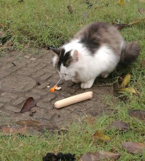 part 5 中國藥科大學江寧校區,網友發現一隻可愛的小喵鼻子上被氣槍打了個釘子進去,而它面前是一根剛吃了一口的火腿腸~~網友推測估計是哪個不懂事的孩子的惡作劇~~心疼小貓~~希望所有的父母能夠從小教育好孩子尊重所有的生命~~