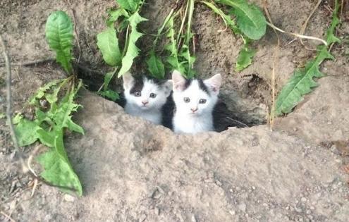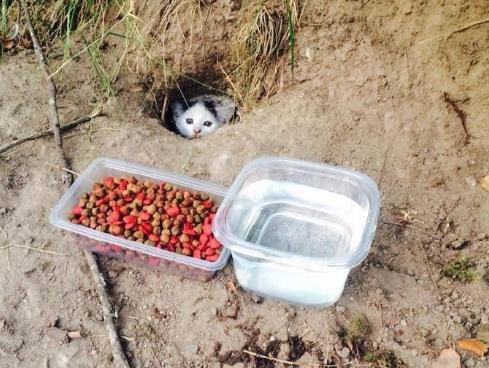 part 2 國外一網友在一洞口發現了一隻萌萌噠小貓,網友便好心的為它準備的糧水,結果第二天網友再來看望時,在另一洞口發現了這個~~