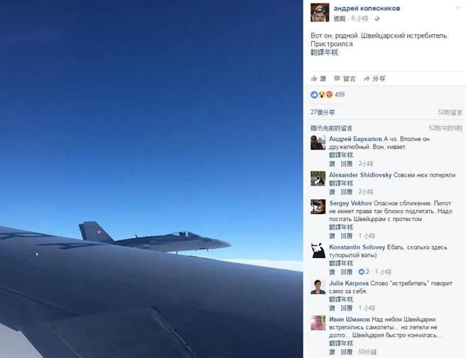據英國《每日郵報》報導,俄羅斯先鋒雜誌主編安德烈·科列斯尼科夫(Andrey Kolesnikov)不久前在臉書上po文表示,自己和其他記者以及代表團遭三架瑞士戰機包圍攔截。