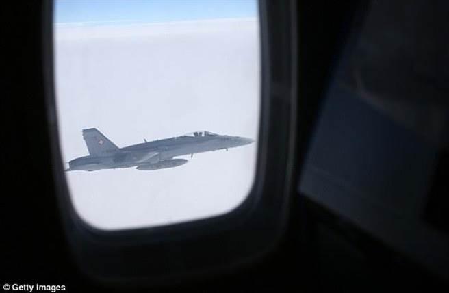 挑釁照曝光!普丁專機忽然遭3架瑞士戰機包圍(圖片取自每日郵報)