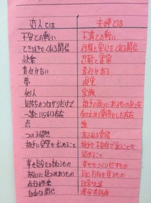很多人都知道戀愛和婚姻是不同的事情,但是當問到差別時,卻又說不出所以然。當愛侶踏入婚姻後,對於身份的轉換應變不及,婚後的感情反而每況愈下,最終導致分離。一位日本網友在網路上公開媽媽寫給她的紙條,上面列出戀愛和婚姻的不同之處,敘述的實在太過到位,讓網友瞬間推爆。