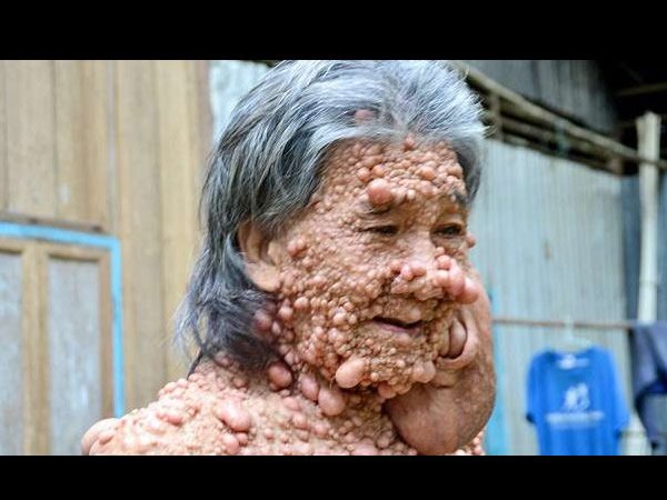 ▼60歲的泰國男子希帝(Shiti Charoenrattanaprapa)從15歲就罹患了一種叫「神經纖維瘤」(neurofibromatosis)的怪病,他不但全身冒出大大小小的疙瘩,連臉龐旁邊都冒出了巨大的腫瘤,模樣十分驚人,也讓任何人都不敢靠近。