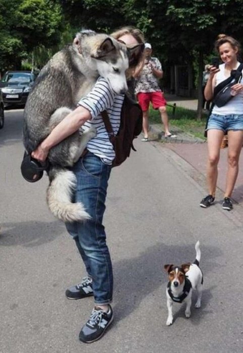 呆蠢哈士奇散步突然嚇到跳進主人懷裡求救!看清牠害怕的「東西」大家一秒笑噴!