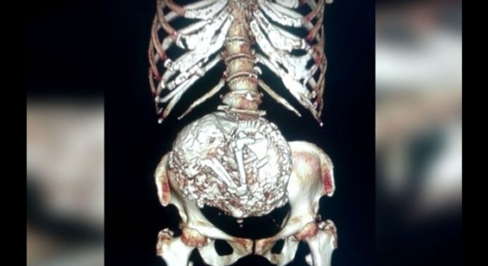智利有一名91歲的老婦人Estela Melendez一直認為自己的肚子中長了一顆腫瘤,所以到醫院進行檢查,但是檢查結果卻發現腹中長的並不是腫瘤,而是一個已經在子宮內住了60年的「胎兒」。