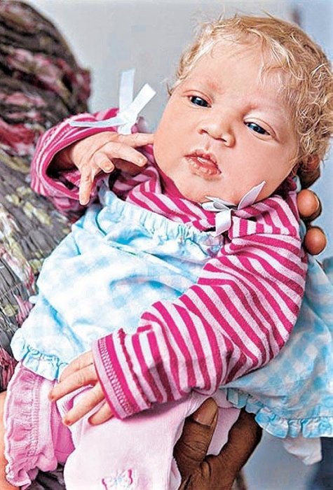 看著女嬰金色的頭髮、大大的藍眼睛,她的媽媽笑著說:「她好美,這簡直就是個奇蹟!」