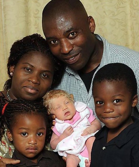 黑人夫妻有可能生下白人寶寶嗎?住在英國的一對非洲尼日爾裔夫婦,都是不折不扣的黑人,準備迎接他們的第三胎!沒想到~當護士走到他們面前時,手上抱著的竟然是「金髮碧眼的白人嬰兒」!