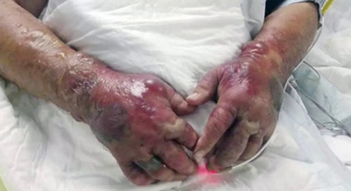 大家愛吃蟹的,千萬要小心一點!根據香港《蘋果》報導,有大陸的民眾在處理白蟹的時候,不小心被蟹鉗刺了一個傷口!他那時候沒有很在意,更沒有馬上處理。結果到後來發現感染了細菌,創傷弧菌使雙手腫脹得像豬腳一樣。![]()