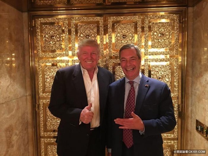圖為川普與英國獨立黨前黨魁奈傑爾-法拉奇在川普大廈會面。史蒂芬的妻子喬安妮是一位全職母親,她說:「川普贏得大選我們也很震驚,但是說實話他的家很不錯,特別漂亮。史蒂芬提議把我們的房子改造一番時,我覺得很有趣。但是完成後發現金色太奢華了,不是我們的風格,我也不習慣美國下一位第一夫人梅拉尼婭的妝容。」