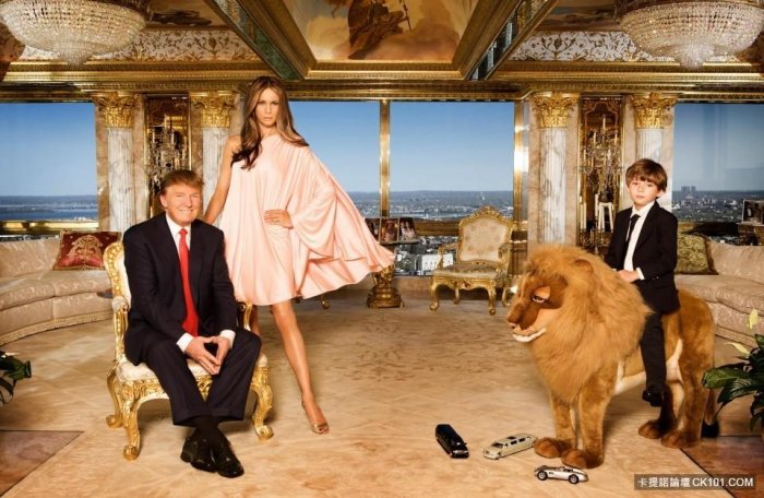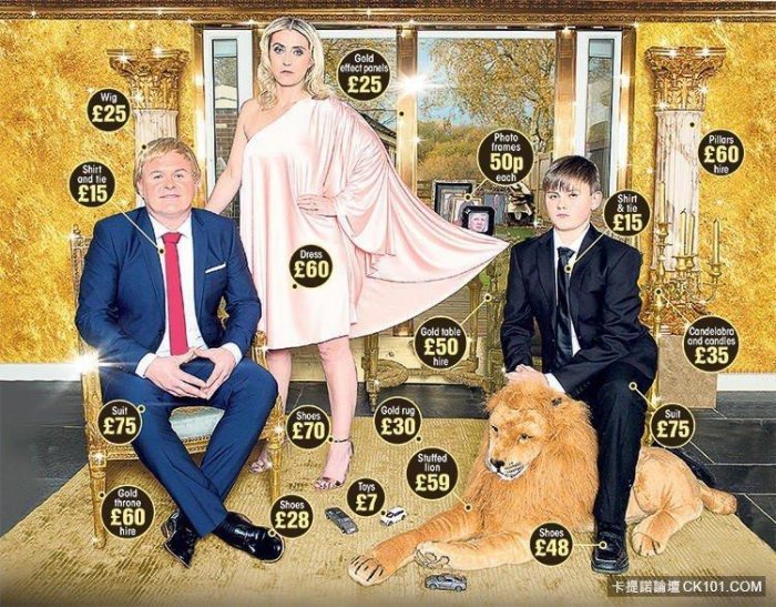 據英國太陽報報導,近日,英國一戶家庭通過網購花費799英鎊把自家的三居室「改造」成川普的頂層豪宅會客廳,不僅金色的主色調保持一致,就連孩子的坐騎也成了玩具獅子。