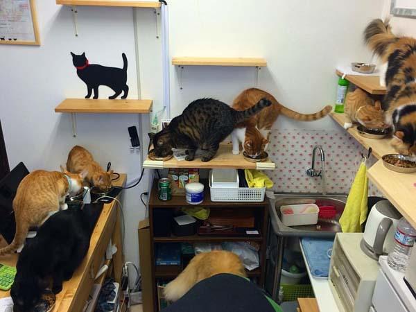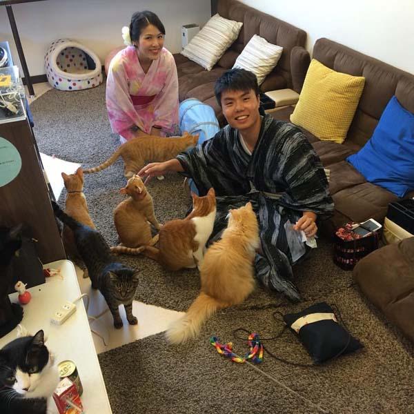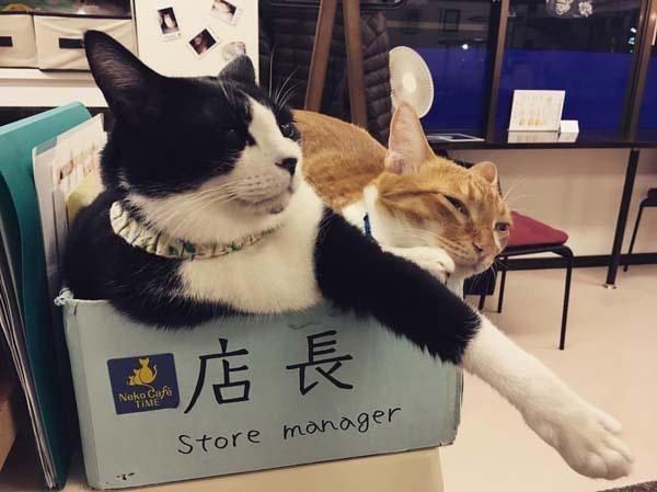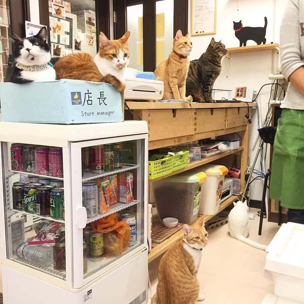 這家名為Neko Cafe Time的咖啡店位於京都,是日本罕見浪浪當家的店。