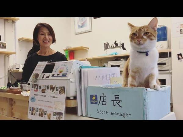 被店主從收容所救出來橘貓決定幫忙顧店回報