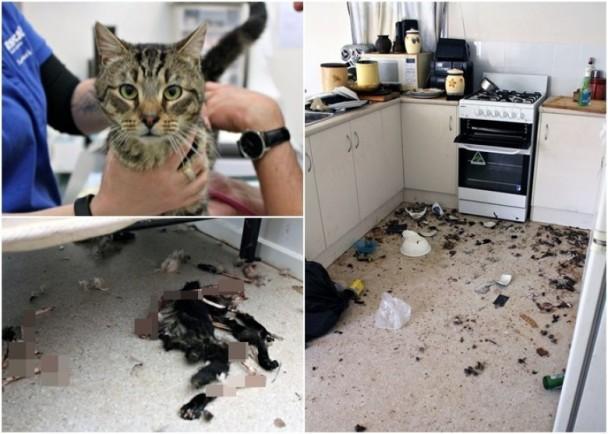 澳洲一名女子養了14隻貓,但卻把牠們鎖在屋內不顧,14隻最終因過度飢餓,而要在屋內作困獸斗,吃掉同類充饑。救援人員於早前入屋檢查時,發現只剩下一隻小貓生還,屋內凌亂一片,地上有貓屍,場面血腥。