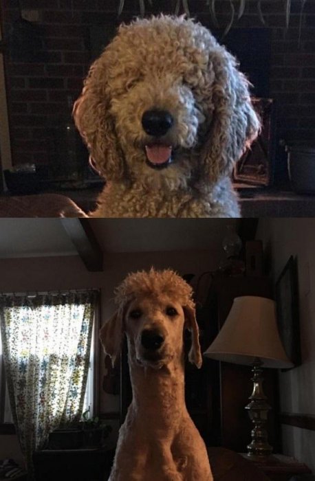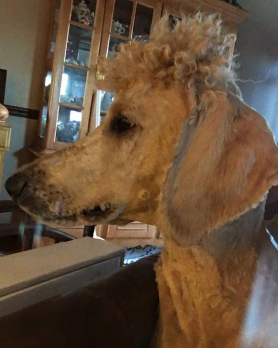 一日,媽媽帶牠去剪毛,並告訴美容師:「頭上留長一點」,狗狗回來竟然變成......