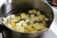 2、將切好的說過放入清水裡泡好,防止氧化變黑。