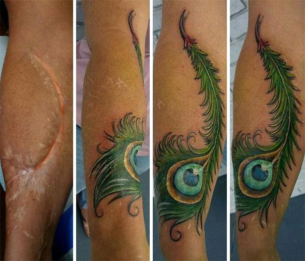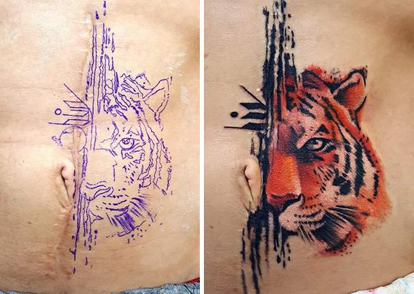 ▼他們聰明地將傷疤與刺青做個「交流」,將原本遮遮掩掩的疤痕轉換成美麗的刺青。
