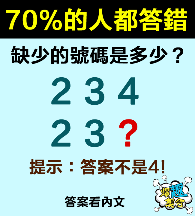 70%的人都答錯!缺少的號碼是多少?