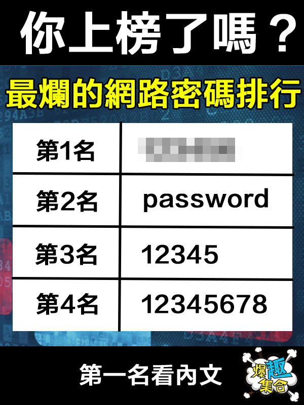最糟糕的網路密碼冠軍就是~