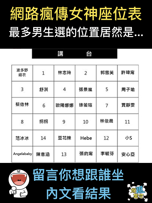 網路瘋傳女神座位表 最多男生選的位置居然是...