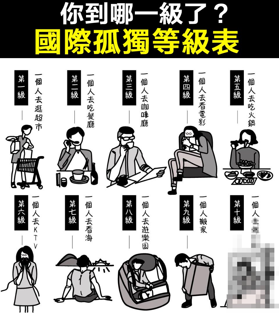 【笑爆】史上最邊緣的國際孤獨等級表.....你到第幾級了?