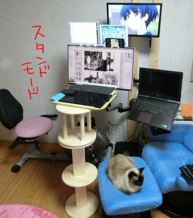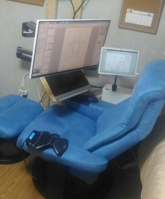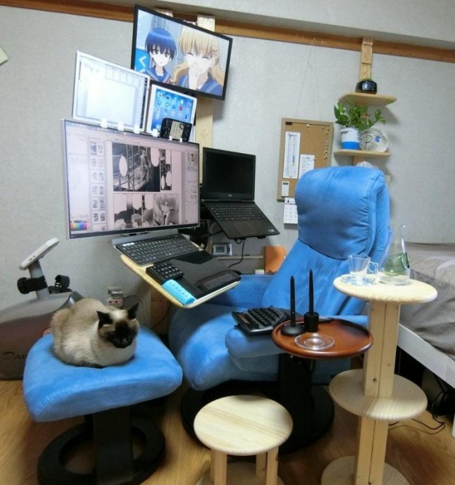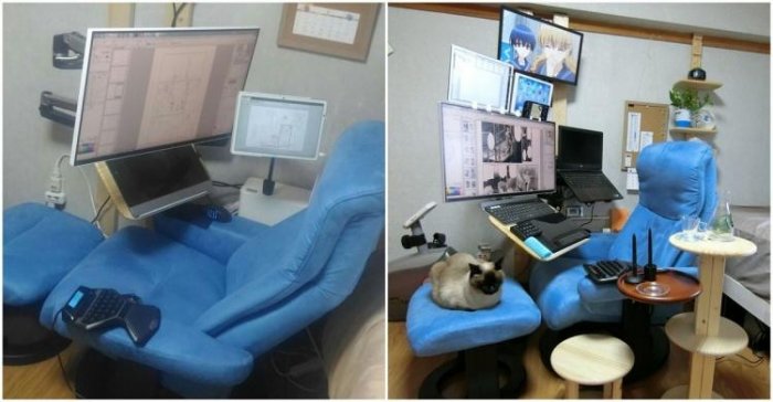 一張躺椅上有很多個電腦螢幕,同時工作跟追劇追番,甚至打遊戲都不成問題~