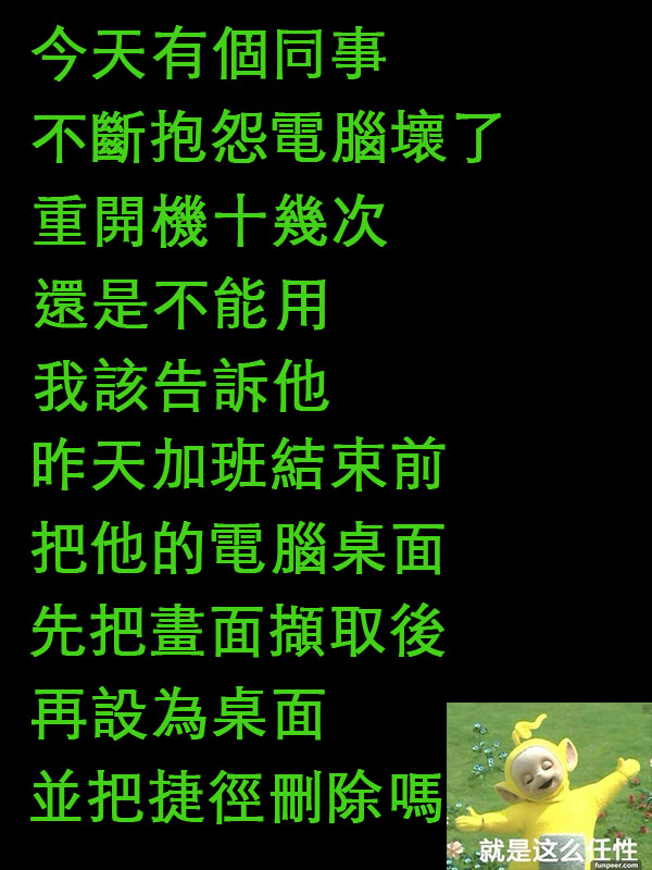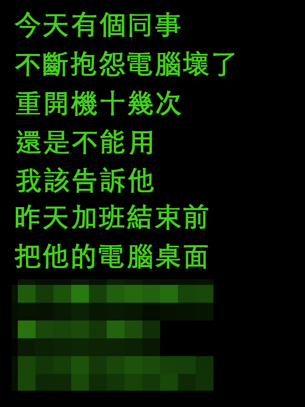 今天隔壁同事不斷抱怨電腦壞掉,我該不該跟他說實話呢...
