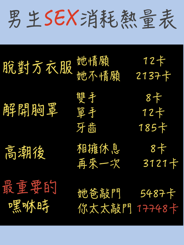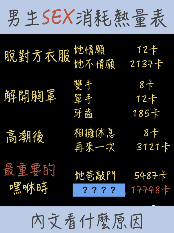 男生SEX消耗熱量表 什麼原因會讓熱量飆升!??