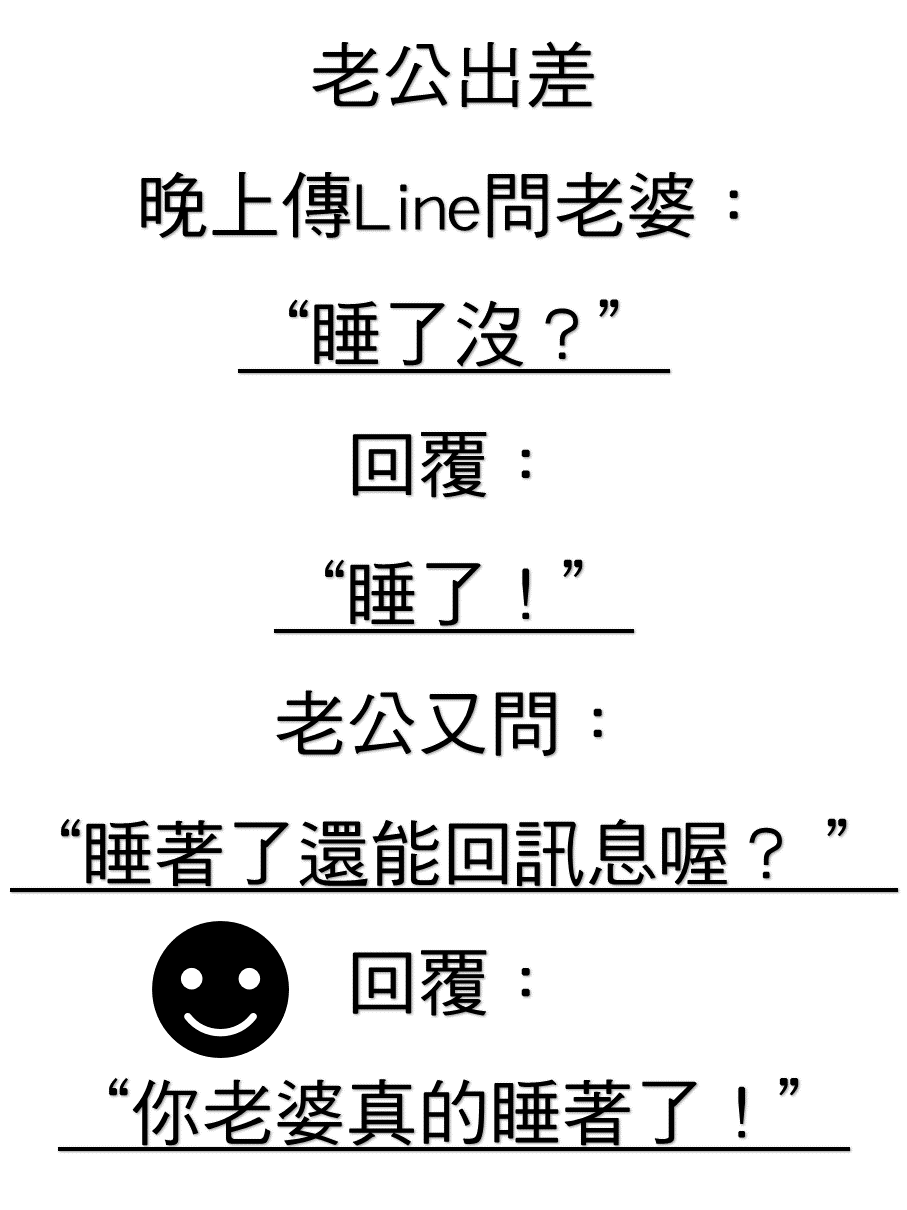 老公出差晚上傳賴問老婆:睡了沒? 老公最後問:「睡著了還能回訊息喔?」 老婆卻這麼回答......