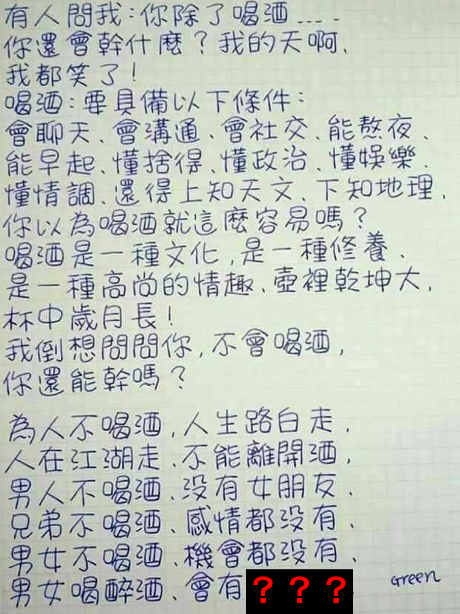 有人問我:你除了喝酒,你還會幹啥? 我反問:「你不會喝酒,你還能幹嘛?」